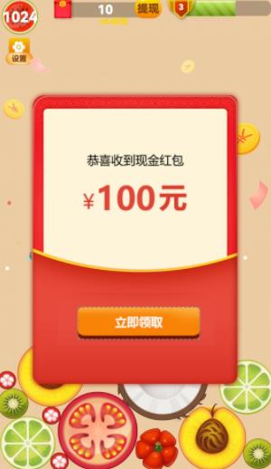 这款游戏通过控制水果掉落的位置,砸中相同的水果即可完成消除合并。合成到关卡指定的水果即可通关,获得红包。此外,参与游戏的每日签到、气泡红包、转盘等方式也可以领取到红包。但请注意,观看约30秒左右的视频广告才可以领取。