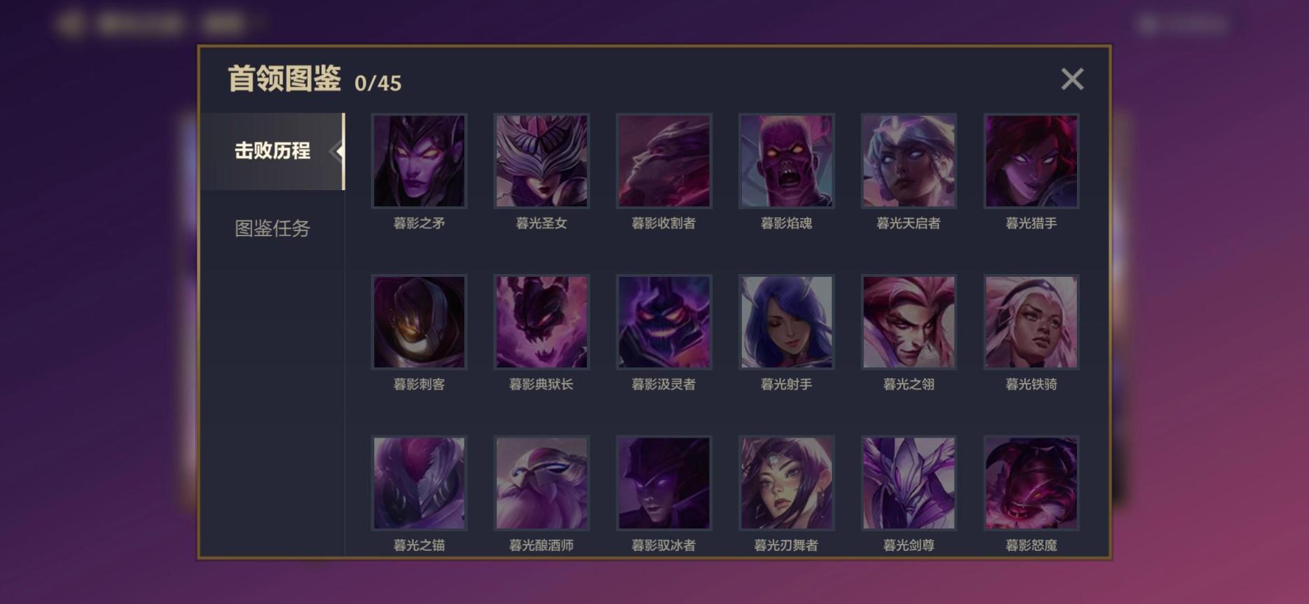 3、点击右上角首领图鉴,可以查看当前解锁的首领以及任务完成情况。