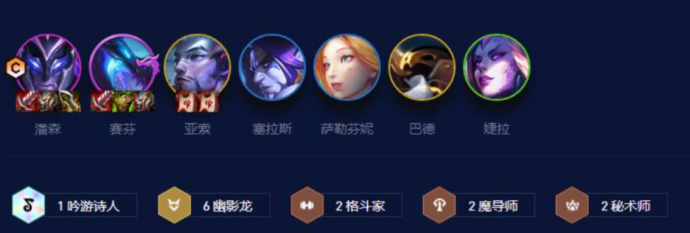 2.其次推荐6幽影龙2狂刃2格斗阵容,保证经济和血量健康前提下,使用利息升级或搜牌,一般情况下再3-2升6级,4-1升7级,5-1升8级。