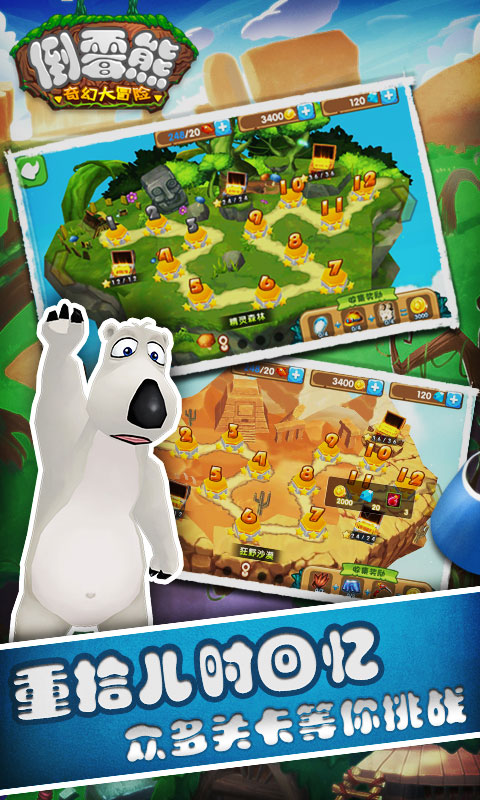 各位游戏爱好者,你们记忆中的那个憨态可掬、又有些暴躁的倒霉熊又回来了!这次,他将带领玩家们进入到一个神秘的奇幻岛屿,展开一场惊心动魄的冒险旅程。这款游戏是根据超人气3D卡通动漫改编而来的手机冒险游戏,已经获得了正版授权。