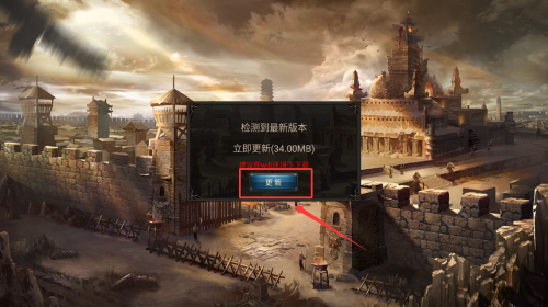 点击红框标注的蓝色更新按钮,下载最新游戏版本。
