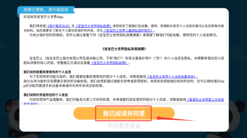 首先,你需要阅读隐私政策,并点击红框标注的同意按钮以继续。接下来,在最近使用的应用列表中点击红框标注的奇妙职业卡片。等待加载完成后,你就可以开始畅游宝宝奇妙世界了。