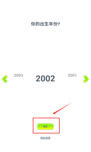 1. 选择出生年份后,点击红框标注的绿色确定按钮。