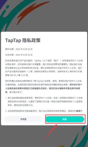 1. 阅读隐私政策后,点击红框标注的同意按钮继续使用。