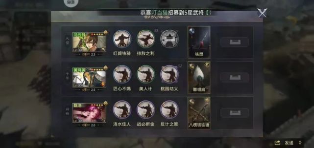 主要是【马云禄】的替换,这个阶段可选择武将不多,用【关银屏】替换下【马云禄】即可,【城主府】5级7.5C的时候即可更换;