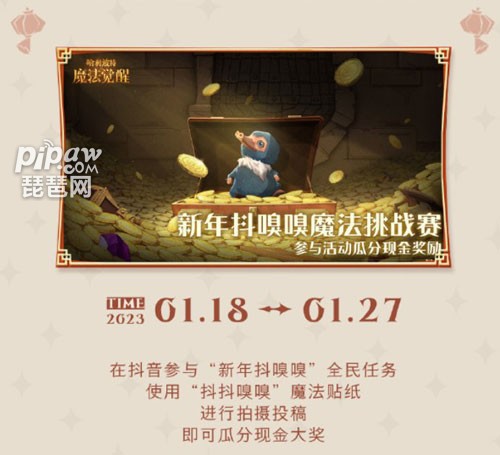 不只是在游戏内,即便是在游戏外,你同样能收获一份霍格沃茨为你准备的惊喜。1月18日~1月27日期间,你还可以登录抖音,参与新年抖嗅嗅全民任务,使用抖抖嗅嗅贴纸,拍摄投稿,彰显你的创意,瓜分现金大奖!