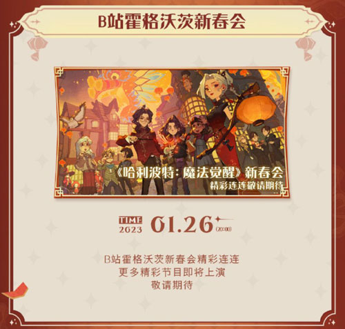 在1月26日,《哈利波特:魔法觉醒》还将在B站为大家送上霍格沃茨新春会。这一次,巫师将进入如梦似幻的魔法时刻,与霍格沃茨学院中的诸多朋友一起体验各种精彩节目,共同分享自己的新春喜悦之情!