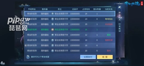 本次赛事还将新增敌对关系,通过帮会城市许海宴处理外交关系(同盟关系或敌对关系),结盟、设置敌对数量均至多一个,开战期间不可结盟,其余时间均可结盟;同一组排名前二的帮会不可结盟。此外,本赛季的场景也进行了优化,给玩家们带来更真实的对弈体验,快来参与本届【天地棋局】感受热血战斗氛围!