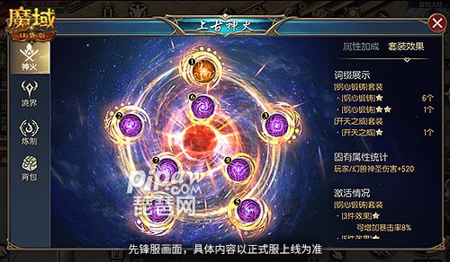 此外,玩家还可使用光曜火灵洗练神火副属性,或通过荒古炽焰余烬为新神火加铸荒古前缀(暴击、暴伤、神圣伤害、幻兽神圣伤害),持续提升神火能力、打造永不止歇的巅峰战力!