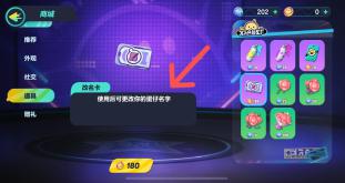 蛋仔派对游戏中,如果想要改名,我们可以在游戏的主界面上方点击【商城】,点击【道具】,这样就能看到改名卡了,购买使用改名卡即可修改昵称。可以选择购买或者索要,购买需要花费180个蛋仔币(18rmb),购买之后也可以选择赠送。