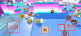2.操作方法有,滚动,跳跃,飞扑,使用道具和托举。使用道具可以阻拦对手前进,让我们通关的几率更高一些。在适当的时候跳跃滚动,圆滚滚的蛋仔缩起手脚在地面滚动,以获得更高的速度。滚动具有较长的冷却时间,可以边滚边跳跃,需要实时控制方向,若不控制前进方向则只会停留原地。并且滚动具有加速度属性,朝向一个方向滚动会越滚越快。另外,滚动同样会造成碰撞,可以用这个方法把其他蛋仔撞开,但需要控制好刹车,也要小心和其他蛋仔碰到一起两败俱伤。