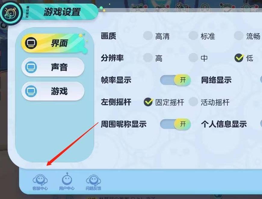 2.进入后下方有是客服中心、用户中心、问题反馈三个图标,点击左下角的客服中心。