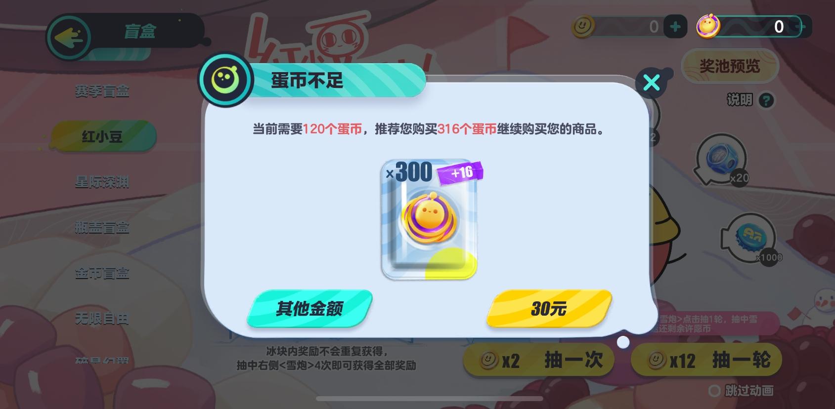 2、而蛋仔币的获取就需要充值现实货币得到了。10个蛋仔币相当于1块钱,也就是说上述的12个许愿币等同于12块钱。
