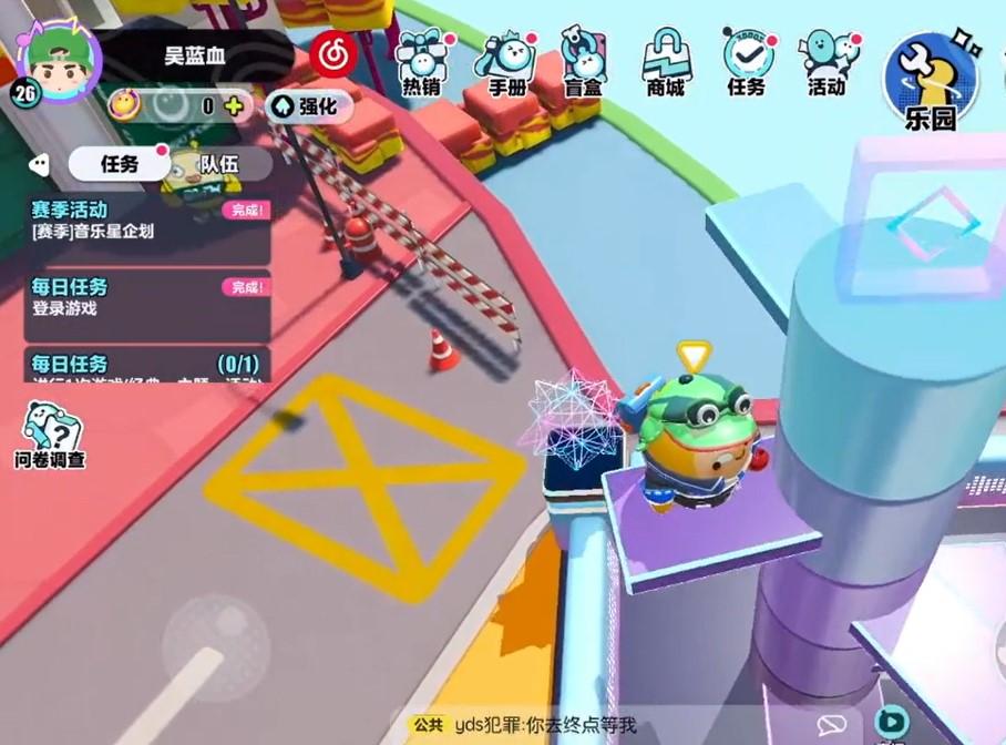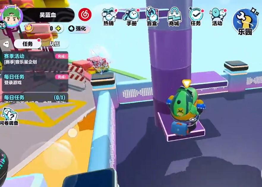 1.首先玩家来到摩天轮旁边的游乐场,在那里会有一层层台阶,玩家需要跳上台阶,利用台阶自身所带有的弹力来让自己一层层向上跳到最高层。
