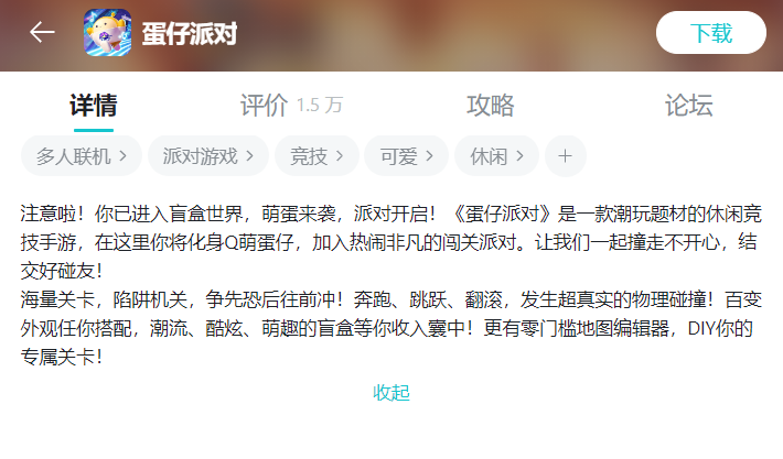 截止023年2月10日蛋仔派对并没有电脑版,只有手机版,所以名字就只是蛋仔派对。这是一款潮玩休闲竞技手游,想玩的小伙伴可以在官网当中下载进行游戏,现在有安卓和ios版本。