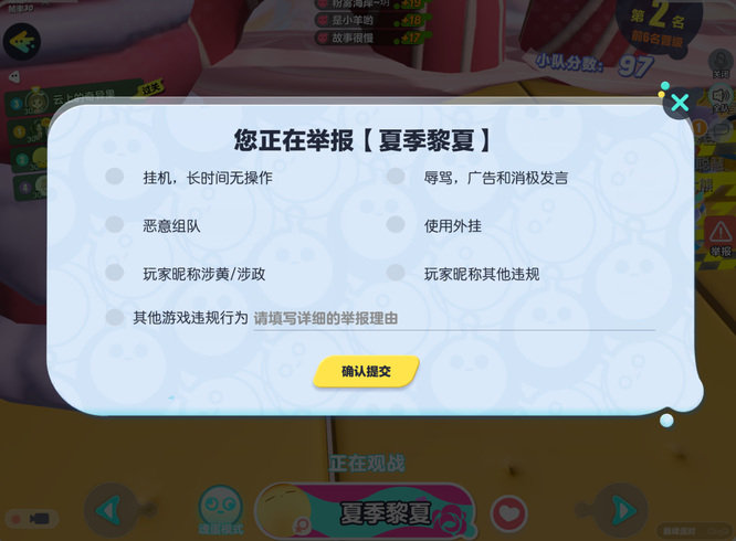 4.或者玩家在休闲派对和巅峰派对中,玩家进入观战界面点击右侧的举报。