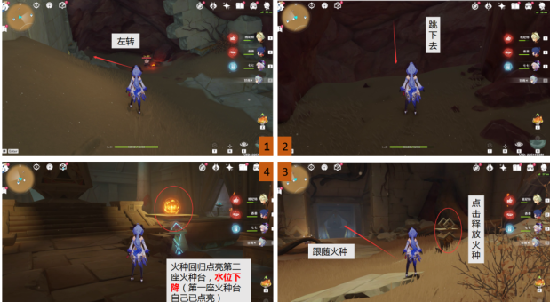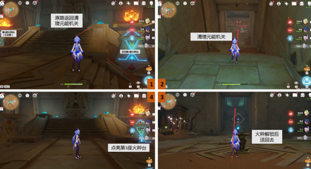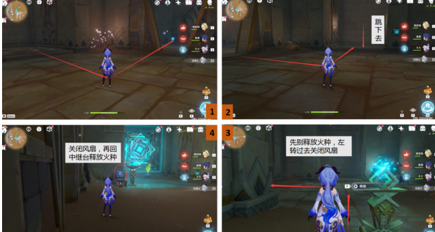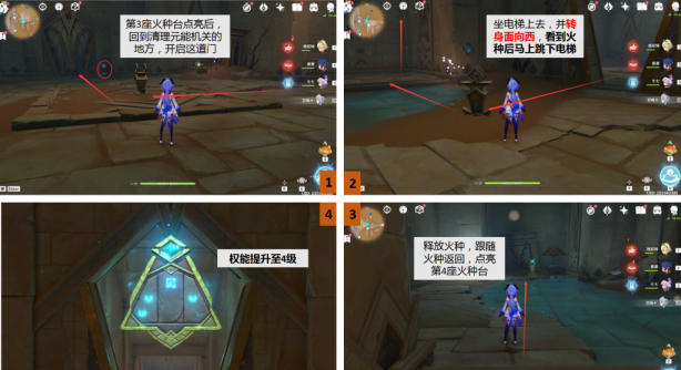 下图3一定要先去关闭风扇(需要权能3级),不然火种经过风扇时会被吹灭,然后回到上一个中继台。