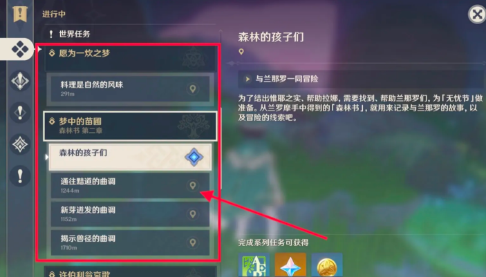 原神森林的孩子们与兰那罗一起冒险在哪?