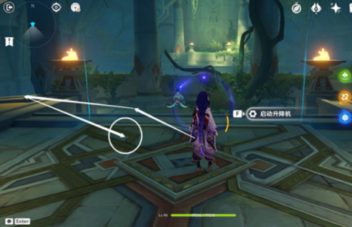 23、启动两遍升降机二,等它降落到地面的时候飞到顶端去。