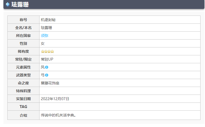 四星角色。在游戏的世界中她是刹诃伐罗学院的一名学生,在这个学院中一直流传有一个传说,在学院考试的过程中凡是没有通过考试的学生同时又不敢找老师补课的学生,都可以到这个学院去请教珐露珊前辈。