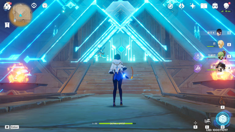 按北、东、南顺序移动全部三个元件后,跟随四叶印到达中央顶部。