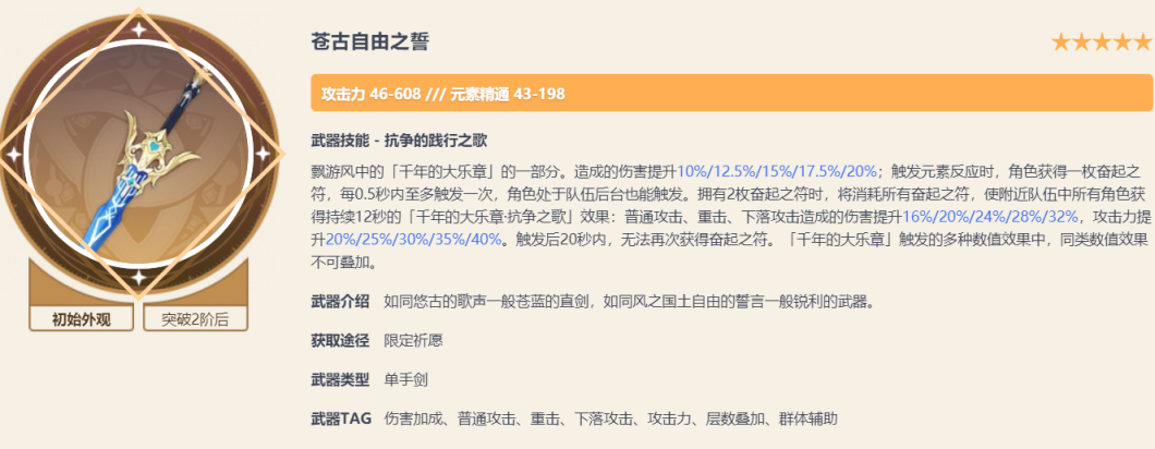 在原神的3.2版本中,草主最好的武器是五星单手剑苍古自由之誓。苍古是草主最适合的武器,它拥有608攻击力的高白值,而且股词条可以增加198的元素精通,这些都是草主需要的属性。而且这把武器特效可以直接增加伤害,同时还可以为队友提供增伤BUFF。