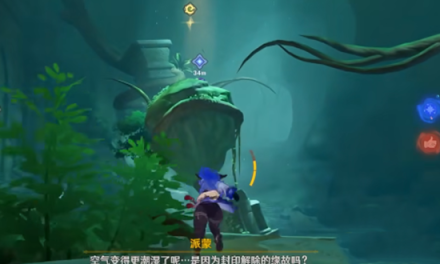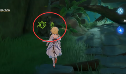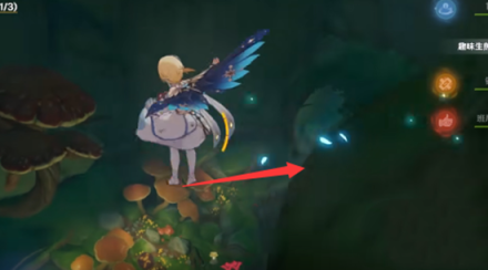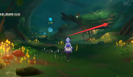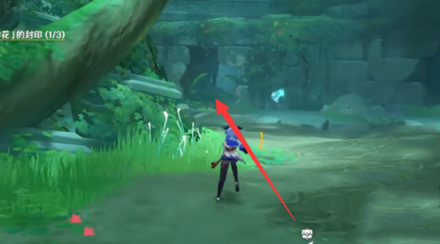 6、再往右边走,点击枝条解锁第一个钵参花封印。