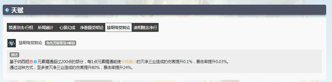 原神3.2纳西妲堆元素精通。在原神游戏中,纳西妲是稀有度为五星的草系角色。纳西妲在元素精通没有达到1000点之前,主堆元素精通,这样收益才会最大,因为它的天赋净善摄受明论、慧明缘觉智论都和元素精通有关。