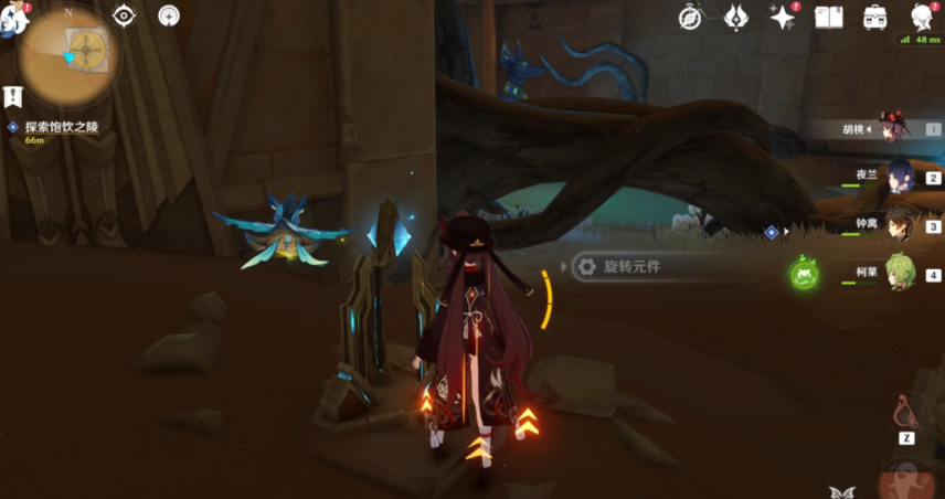 这时候前方就是我们刚才引导仙灵的地方,上去触碰仙灵终点旁边的小元件,侧边的宝箱和机关解锁,上去点击机关。