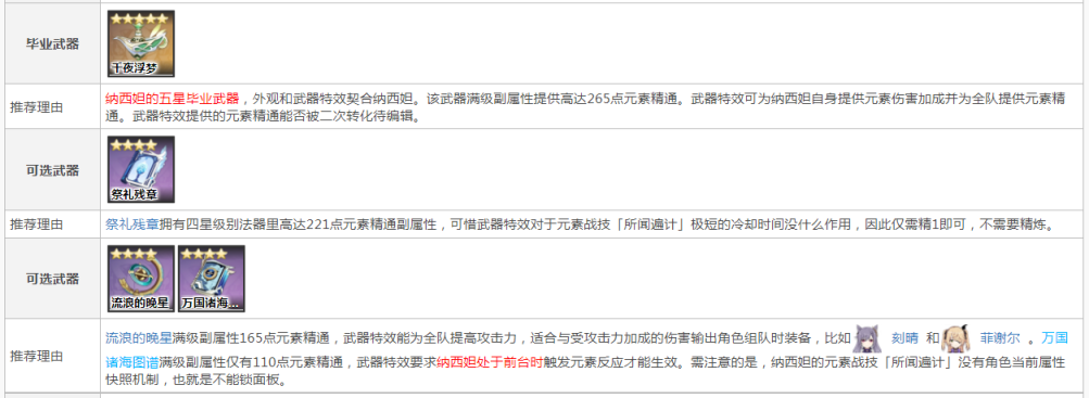 二、选择增加元素精通的武器,如五星武器千夜浮梦,四星武器祭礼残章、流浪的晚星、诸海图谱等。