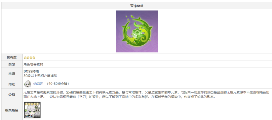 草神纳西妲突破材料“灭诤草蔓”需要击败boss无相之草。