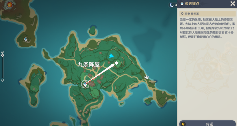 岩藏流武士六:传送九条阵屋锚点,前往图中指引位置。