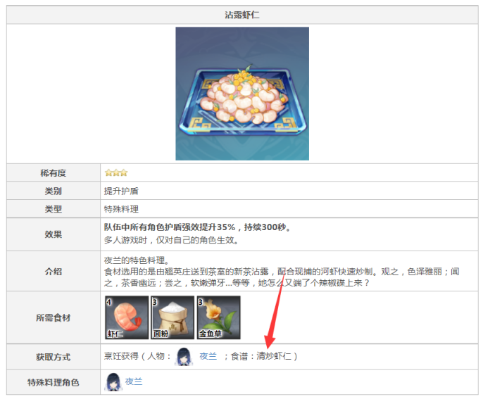 原神夜兰特殊料理是沾露虾仁,通过烹饪清炒虾仁的方式获得。在原神游戏中,沾露虾仁是夜兰的特殊料理,该料理可以用于提升护盾。