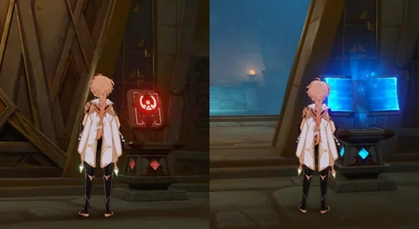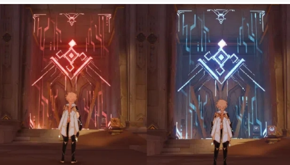 圣显棱柱是赤王遗迹中的控制机关,散发着神秘的光芒。靠近圣显棱柱之后,可以操作附近散发相同光芒的物体,也可以改变神秘光芒的颜色。