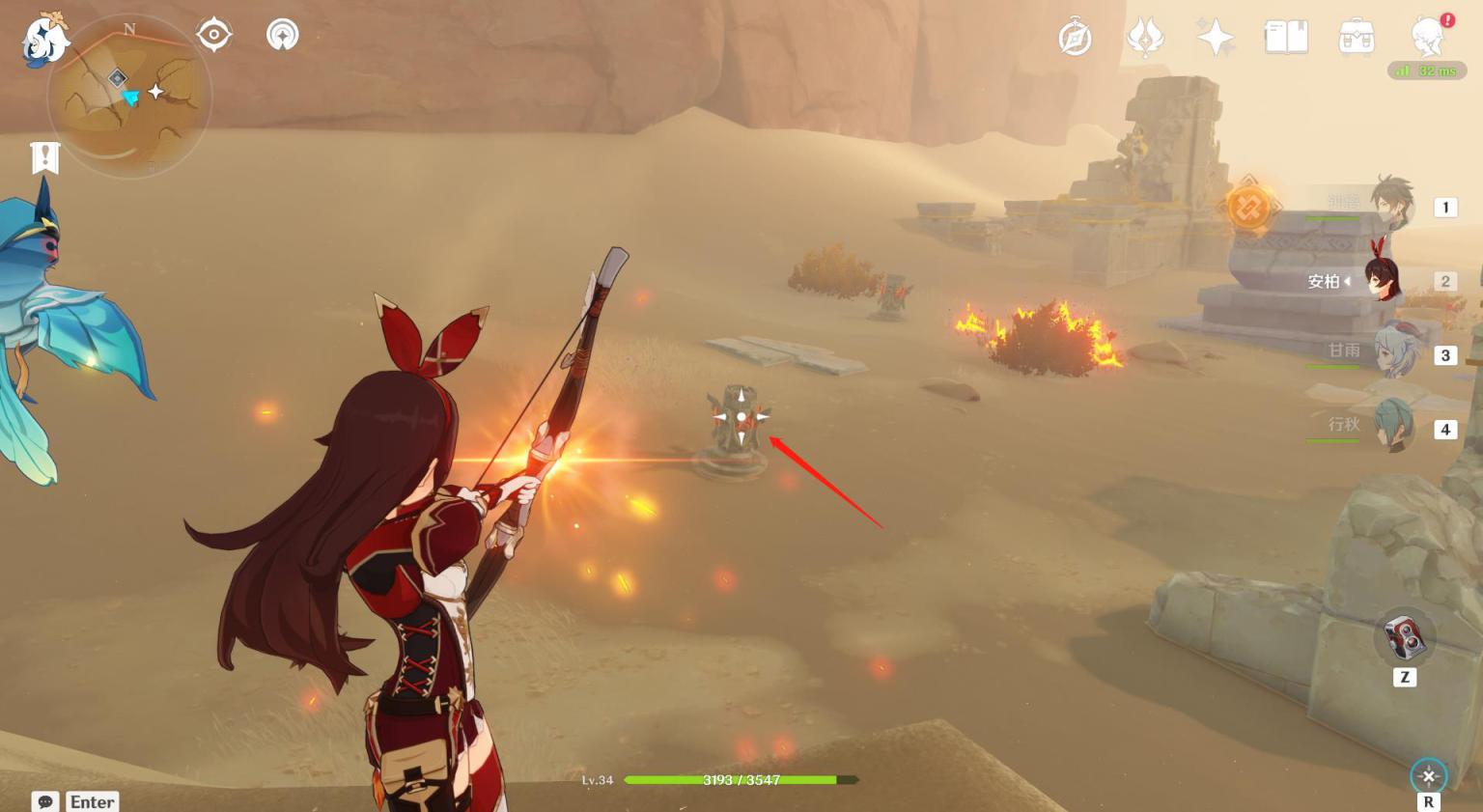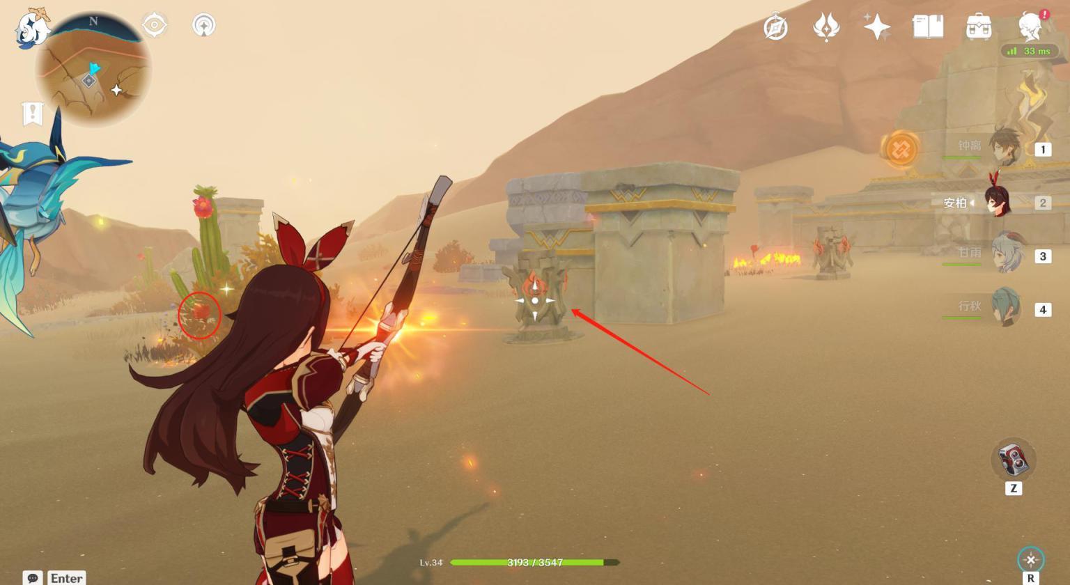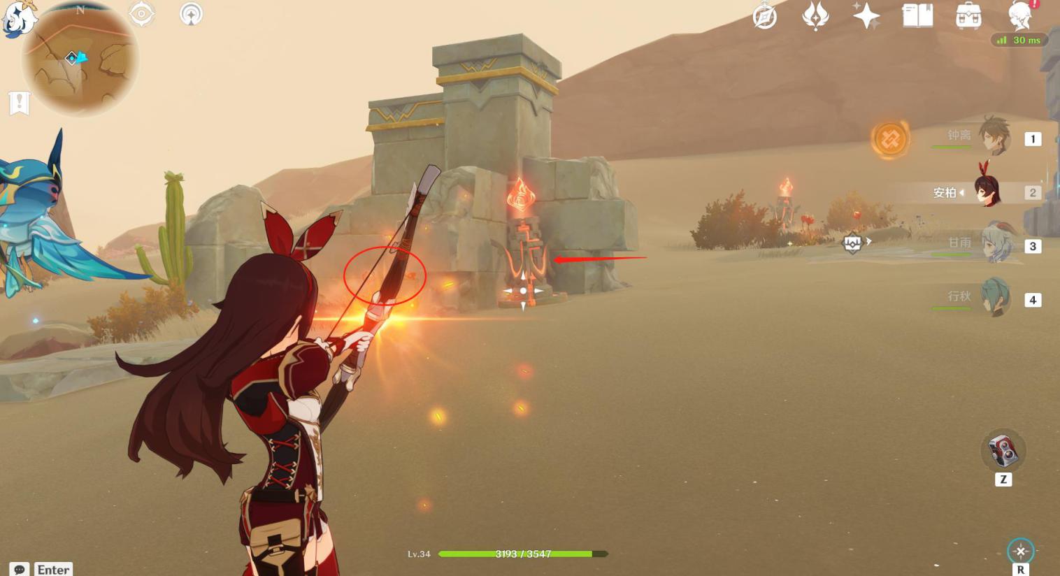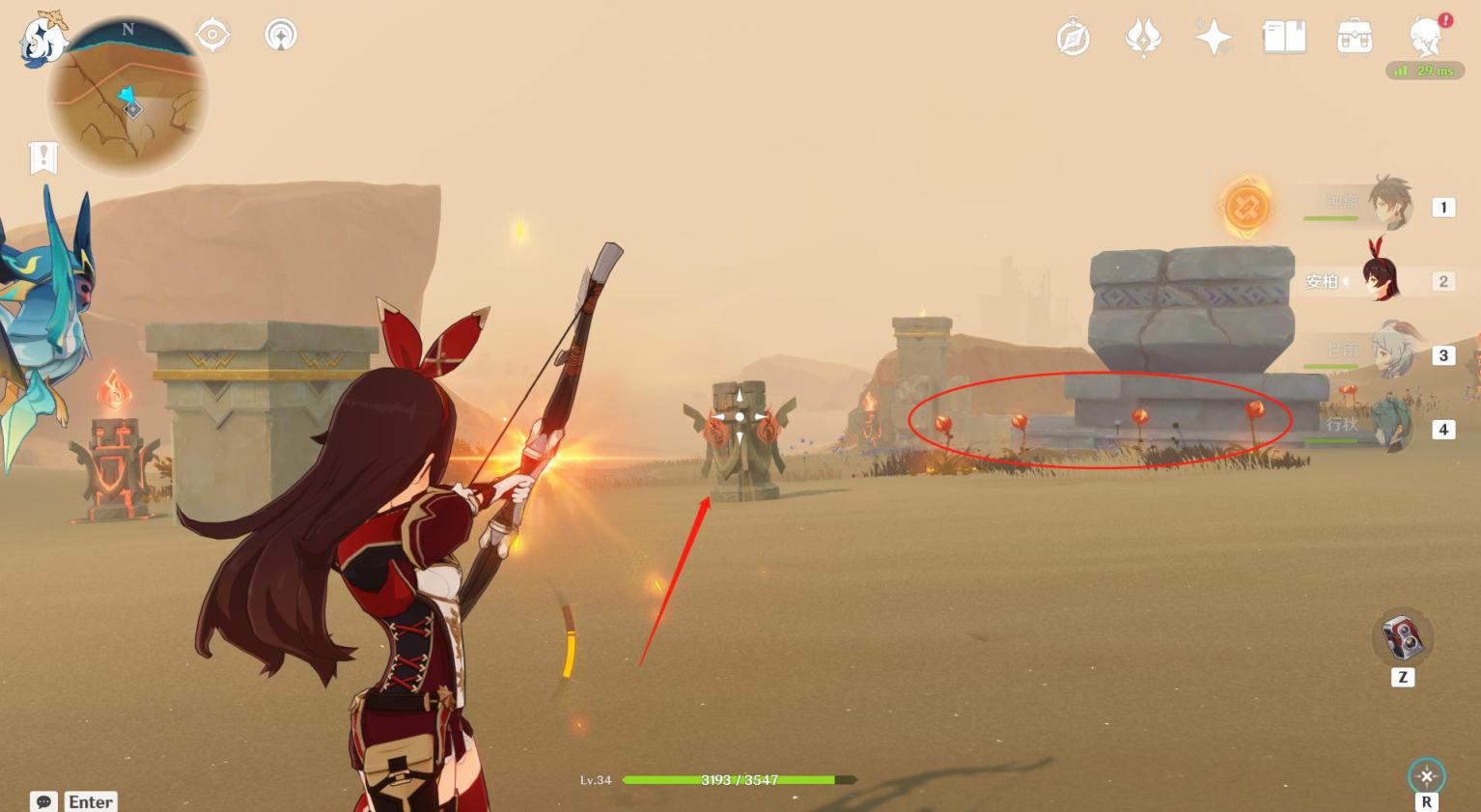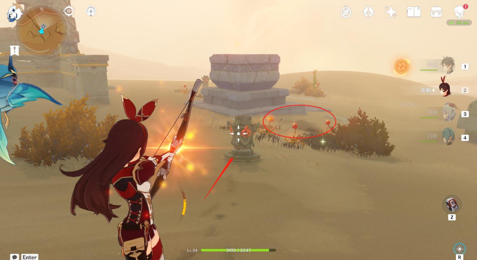 1、来到千柱的花园秘境入口,第一个点亮的是周围没有烈焰花在旁的火元素方碑。