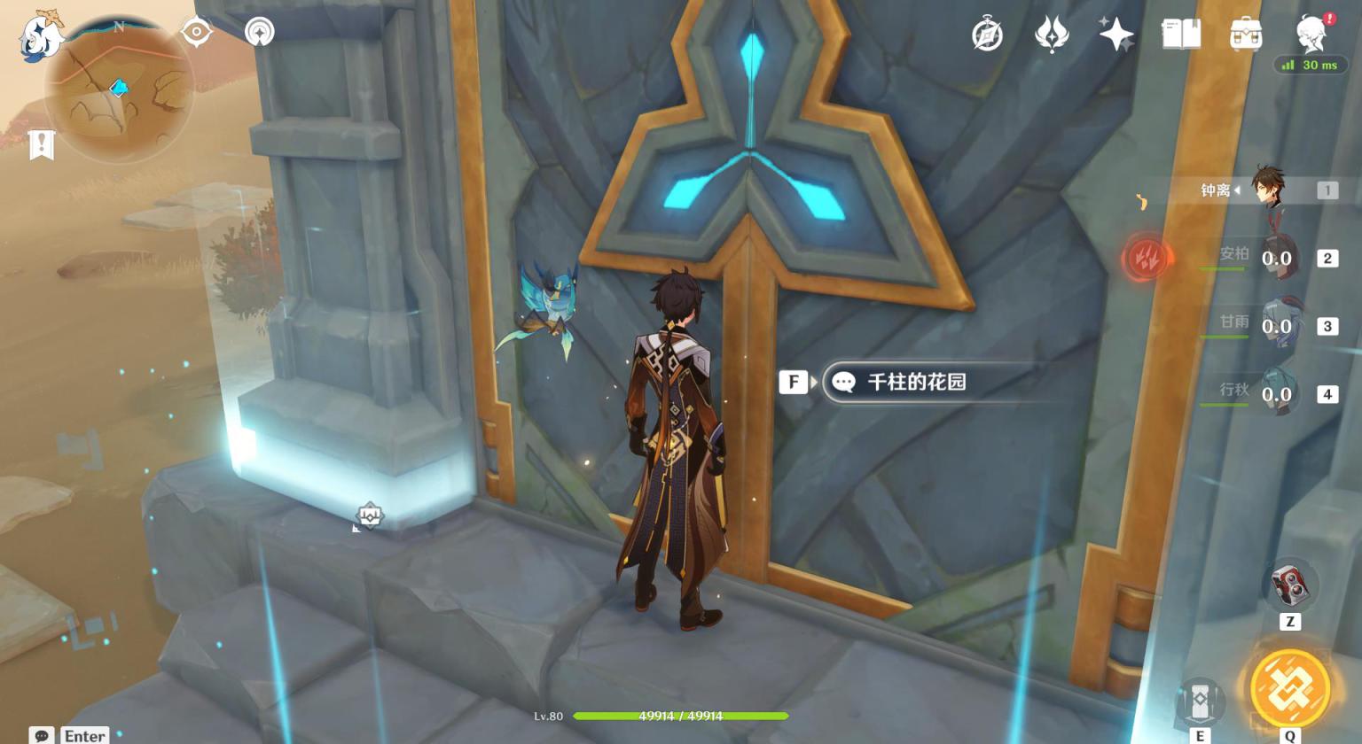6、五个火元素方碑按照顺序点亮后秘境入口就会出现,与其交互后就能解锁千柱的花园。