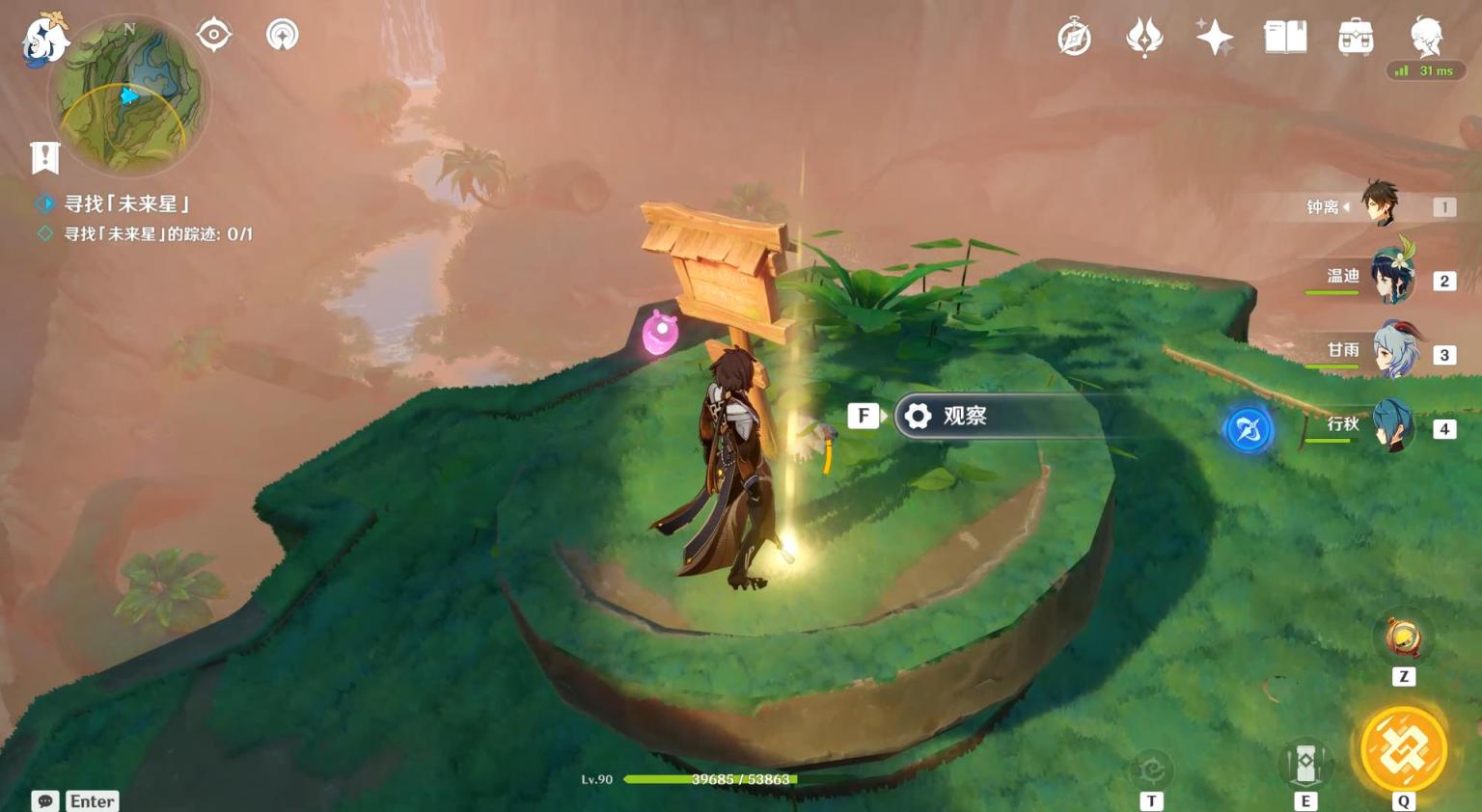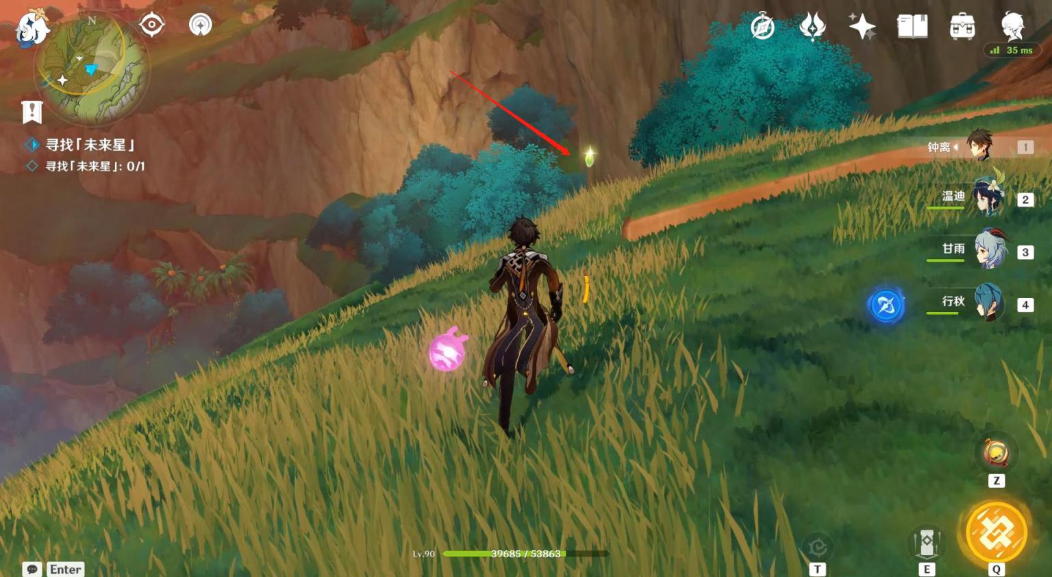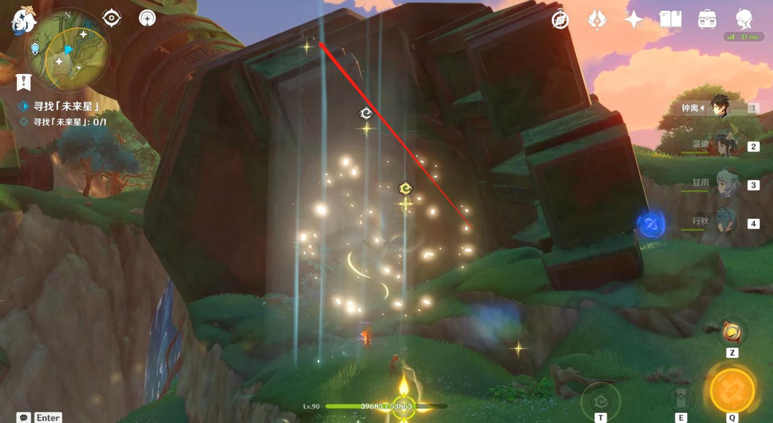 7、降落在机器人头顶后向着东北方向前进就能看到一颗未来星,这颗就是第一天的未来星了。