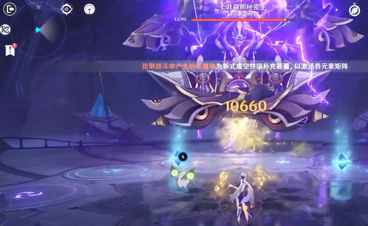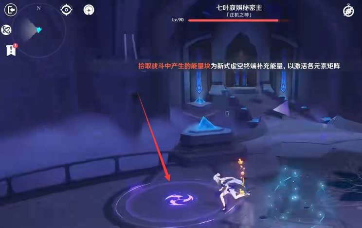 首先我们需要先站到雷元素的区域,将boss手臂震碎。