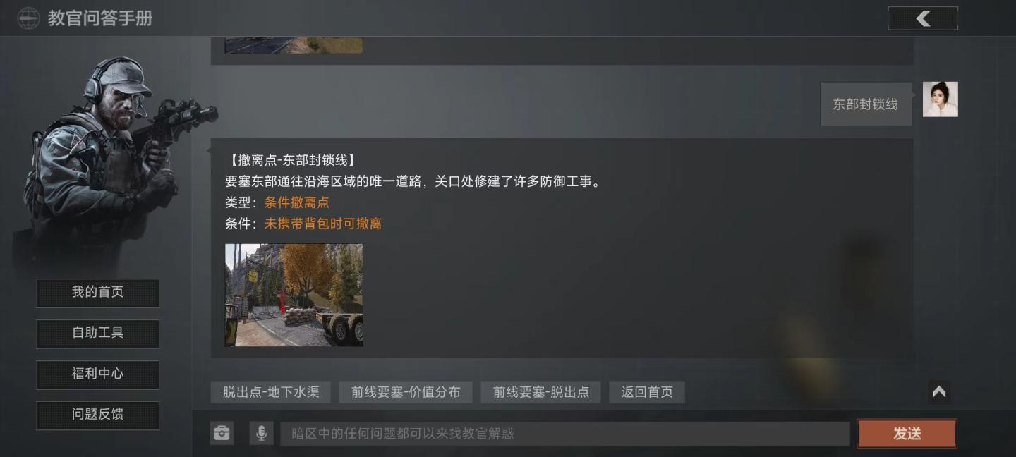 首先是东部封锁线,撤离方法是未携带背包就可以撤离