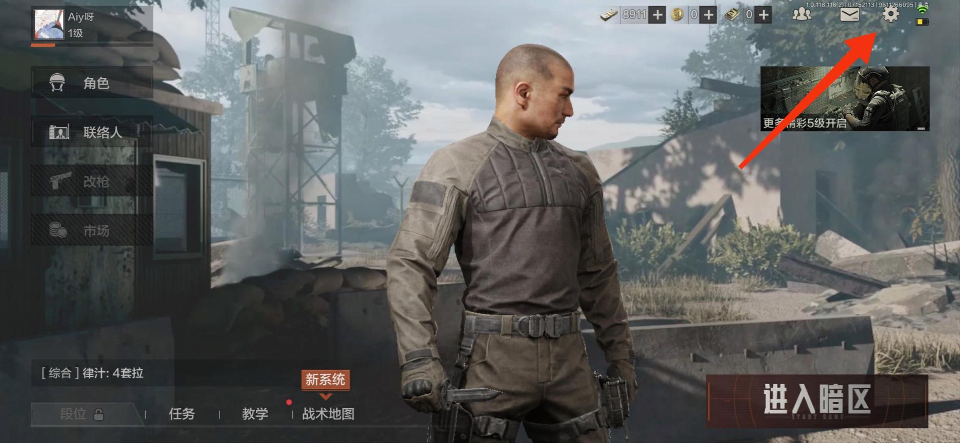 1、首先玩家进入游戏主界面,点击右上角的设置,如图所示: