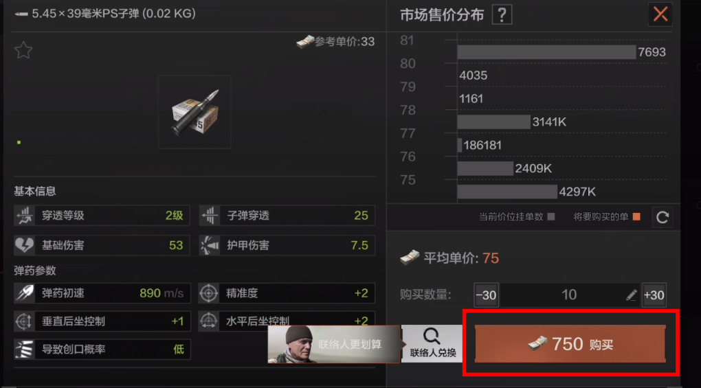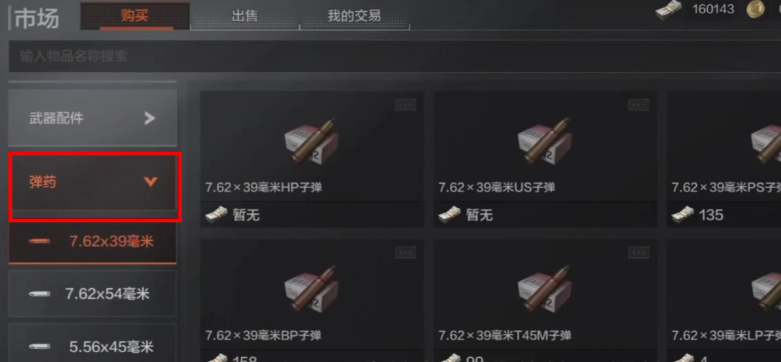2.在市场里面找到弹药,然后找到你想要买的子弹型号,点击它。