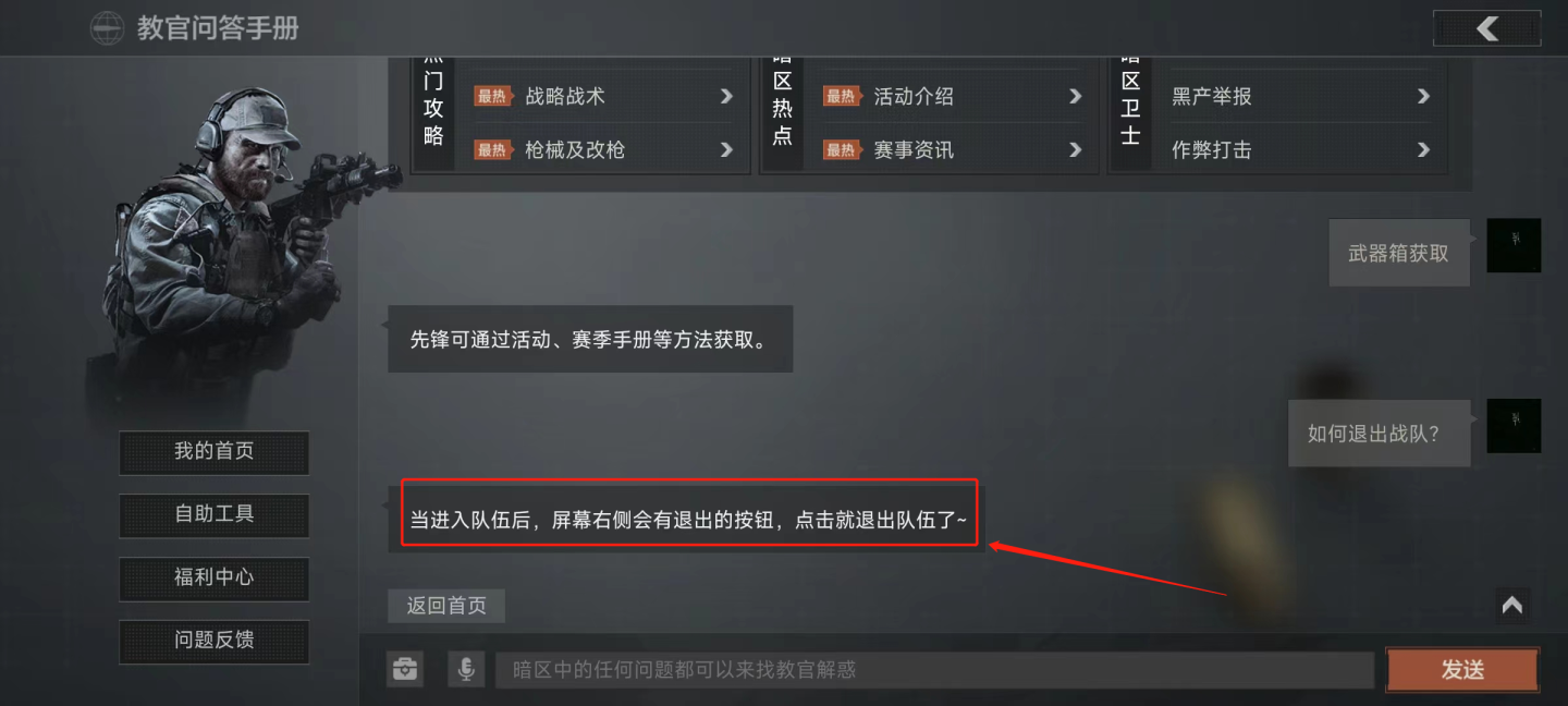 暗区突围手游游戏中玩家想要退出战队的具体方法就是需要玩家当进入队伍后,游戏中的屏幕右侧会有退出的按钮,玩家点击就可以成功的退出队伍了。