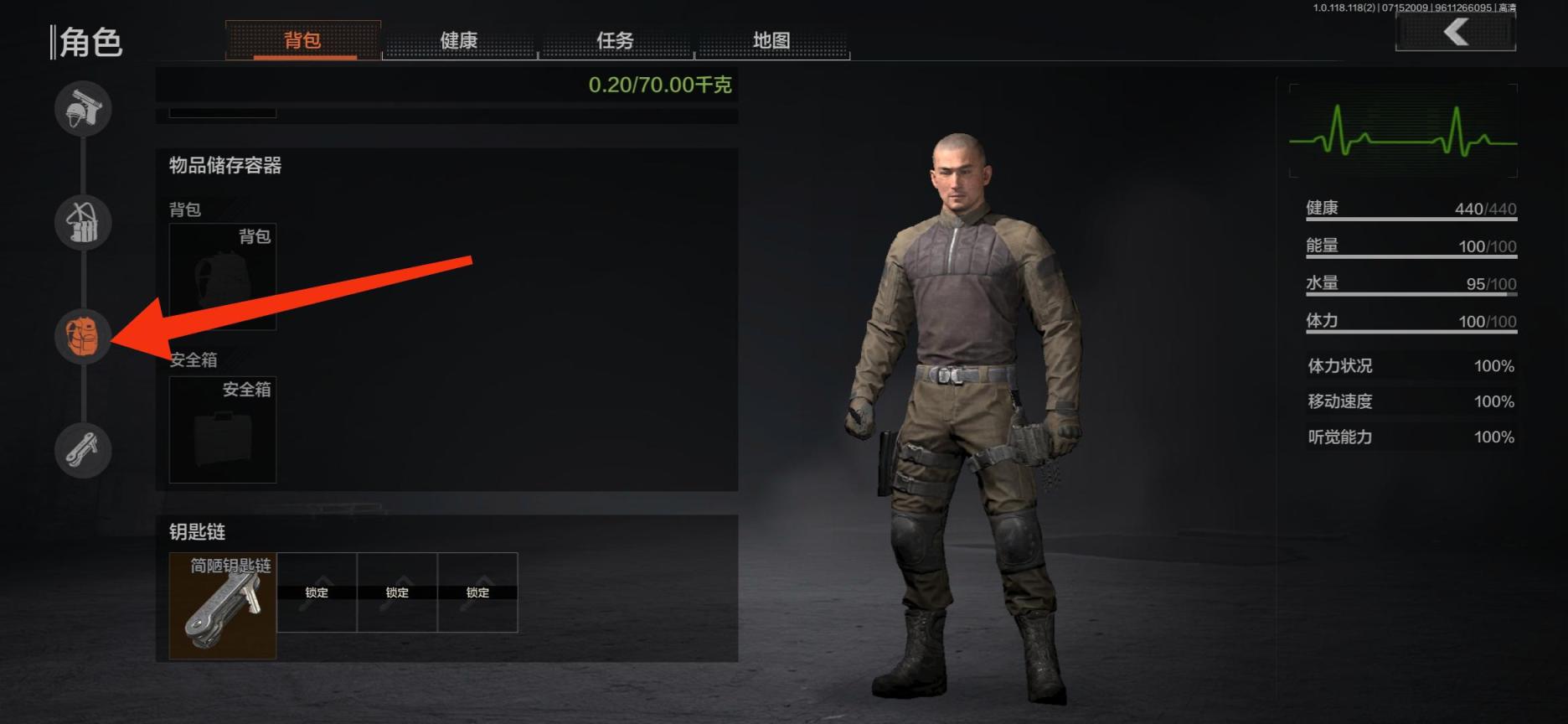 1、在暗区突围中,玩家进入游戏对局点击左下角的背包标志,如图所示: