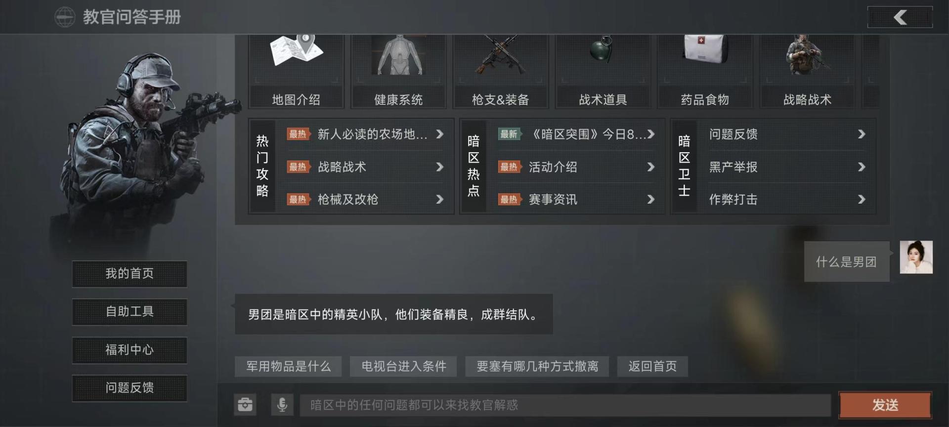 男团就是游戏中成群结队的精英怪,有农场男团、山谷男团、北部山区男团、军械库男团,男团设备精良,一般就是驻守在一个地方。男团与普通人机并不相同,与他们对抗的难度远远大于人机甚至是特遣队员,而且男团们拥有特殊的语音和特殊的装备。打败了之后,可以得到非常丰厚的物资,比如MP5、AKM,还有镭射以及胸挂背包等等的满级甲。