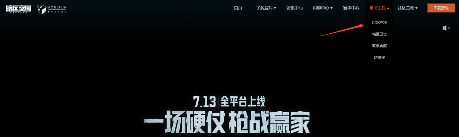 3、进入官网后,选择右上角的自助工具,再点击【CDK兑换】,如下图所示。