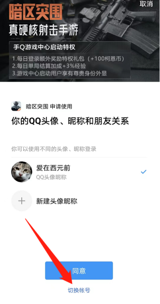 选择之后点击切换账号