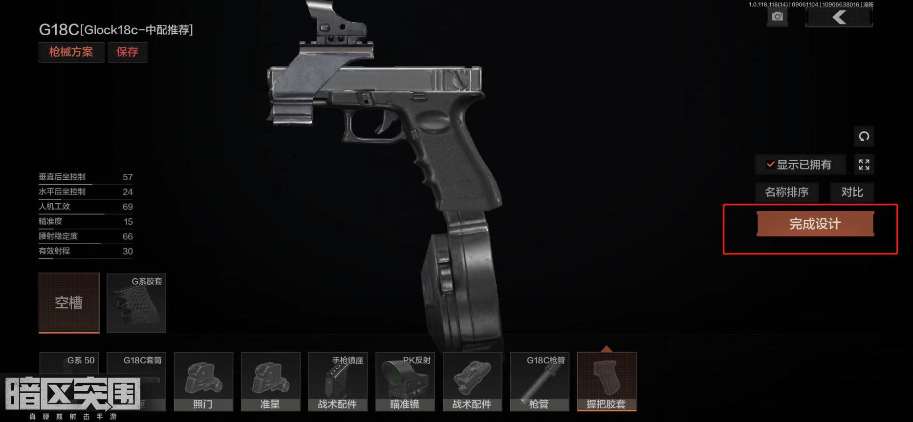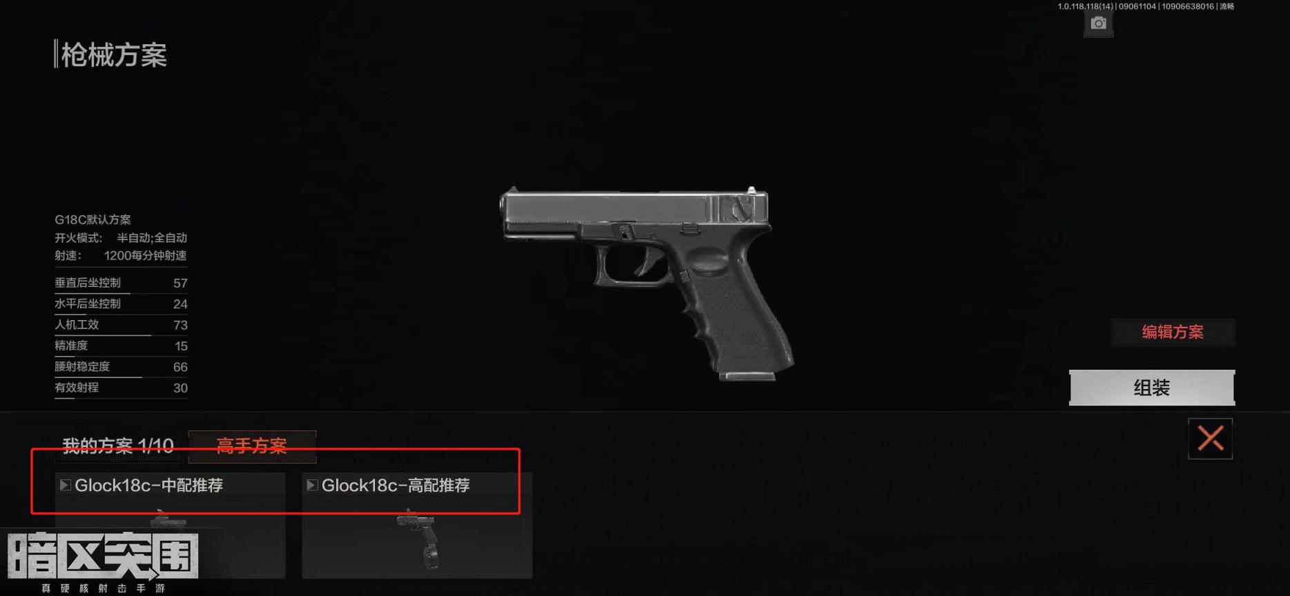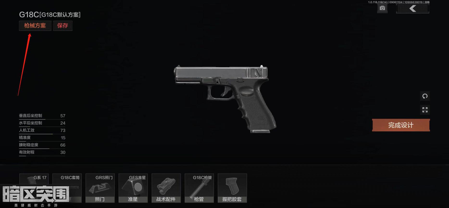 玩家在暗区突围游戏中获得g18c后,如果不知道怎么改,先进入改枪页面,点击枪械方案