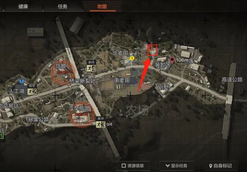 在暗区突围游戏遗落的手术包任务种需要找到的哨塔位置如下所示: