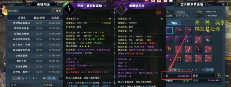 2、逆水寒多余装备处理方法二:好的词条除了可以用来打造,还可以上架到自己的玩家店铺进行买卖。