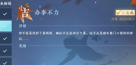 触发条件:对话(只能在剧情中触发,梦回第一章第二回档点)